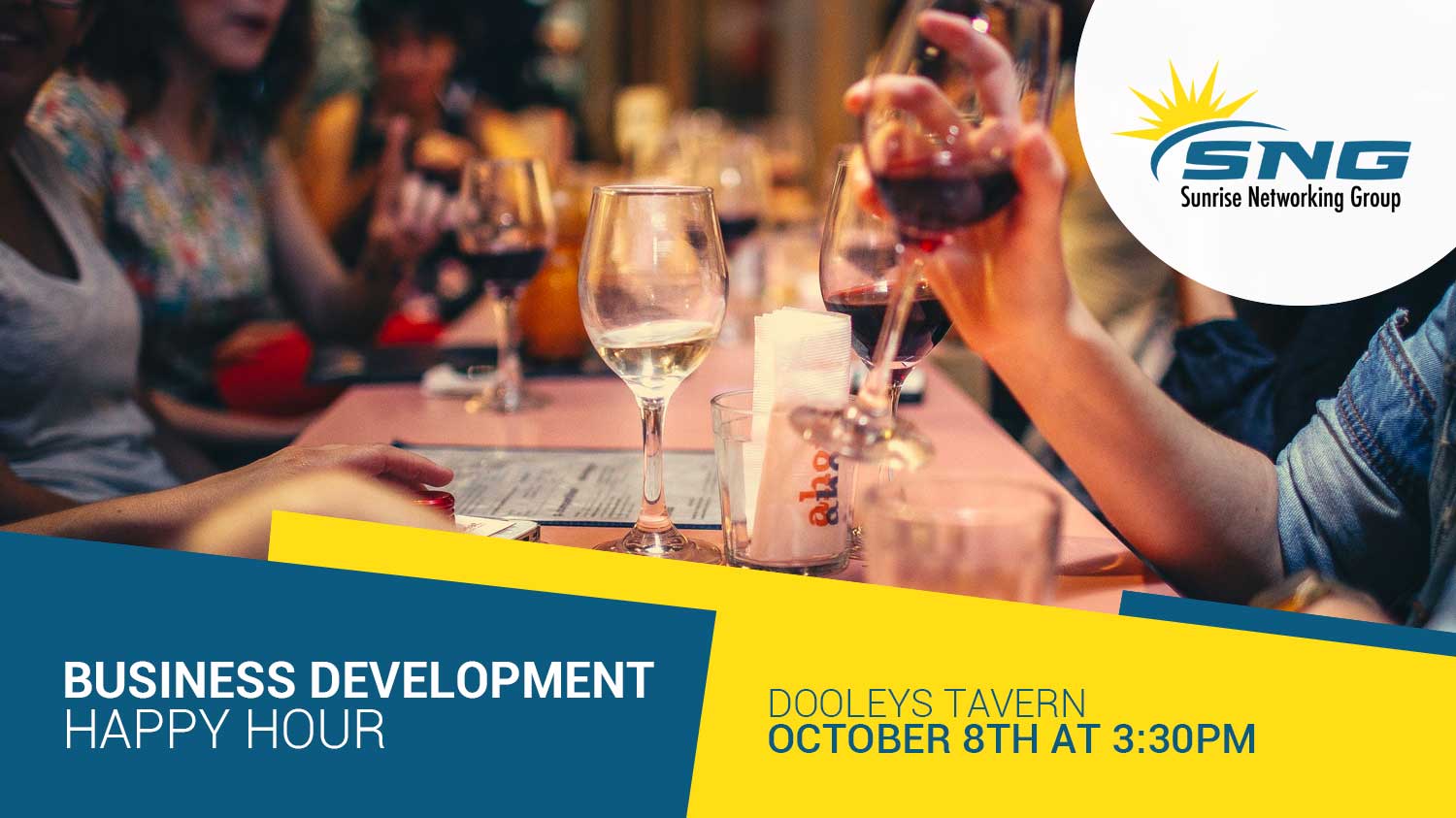 october 2020 Business Development Happy Hour 08oct3:30 pm6:00 pmBusiness Development Happy HourDooleys Tavern Time(Thursday) 3:30 pm - 6:00 pm CalendarGoogleCal