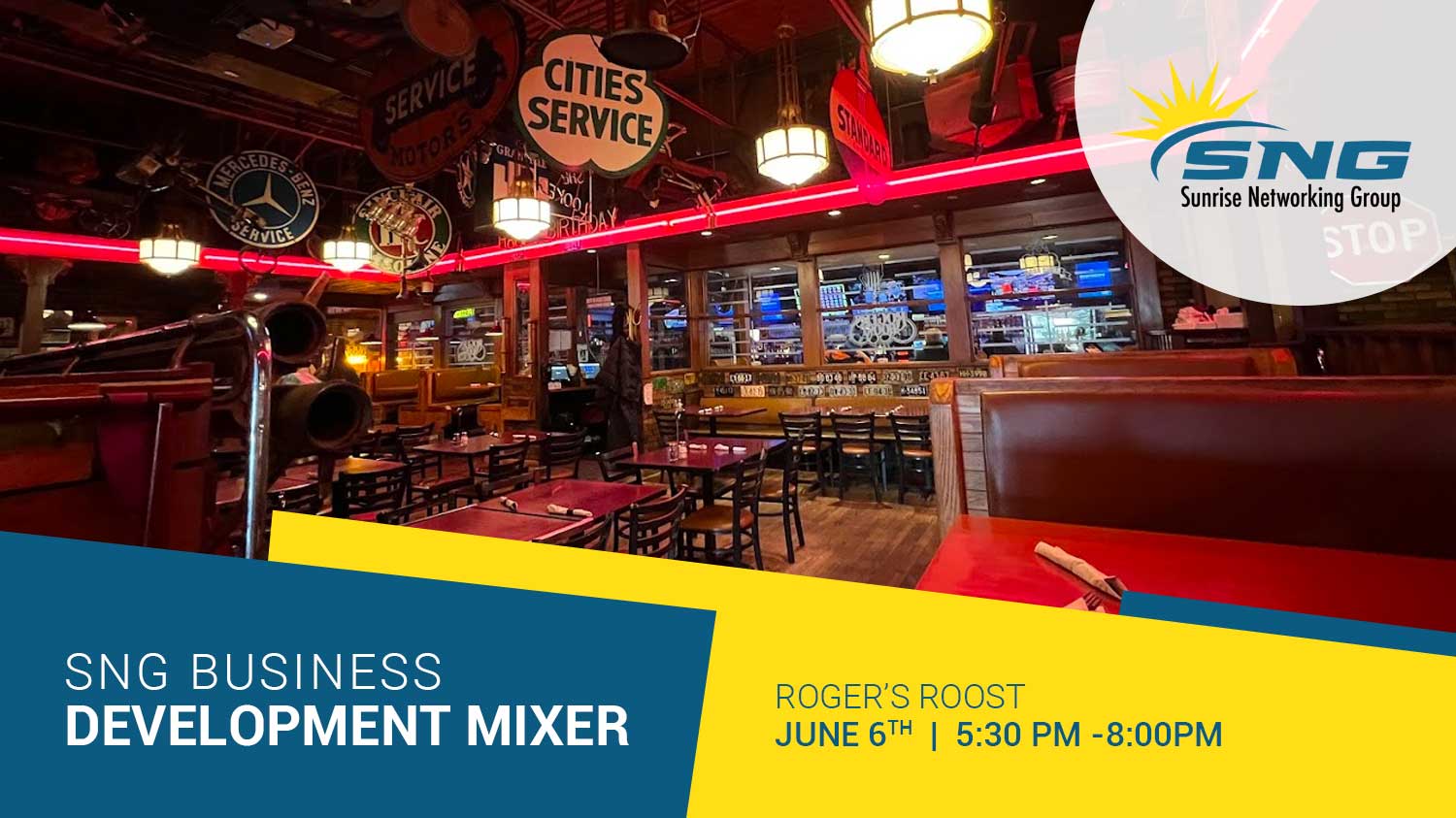 The Sunrise Networking Group invites you to an evening out with SNG members, entrepreneurs, executives, and career-minded professionals on Tuesday, June 6th at the Roger’s Roost.