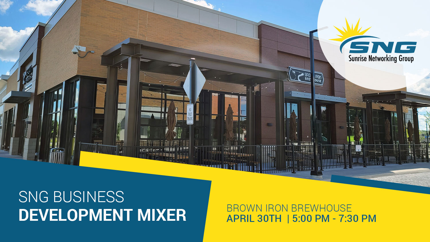 The Sunrise Networking Group invites you to an evening out with SNG members, entrepreneurs, executives, and career-minded professionals on Thursday, April 30th at Brown Iron Brewhouse.