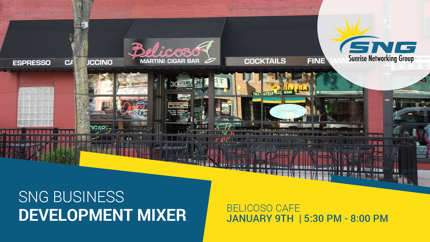 The Sunrise Networking Group invites you to an evening out with SNG members, entrepreneurs, executives, and career-minded professionals on Thursday, January 9th at Belicoso Cafe.