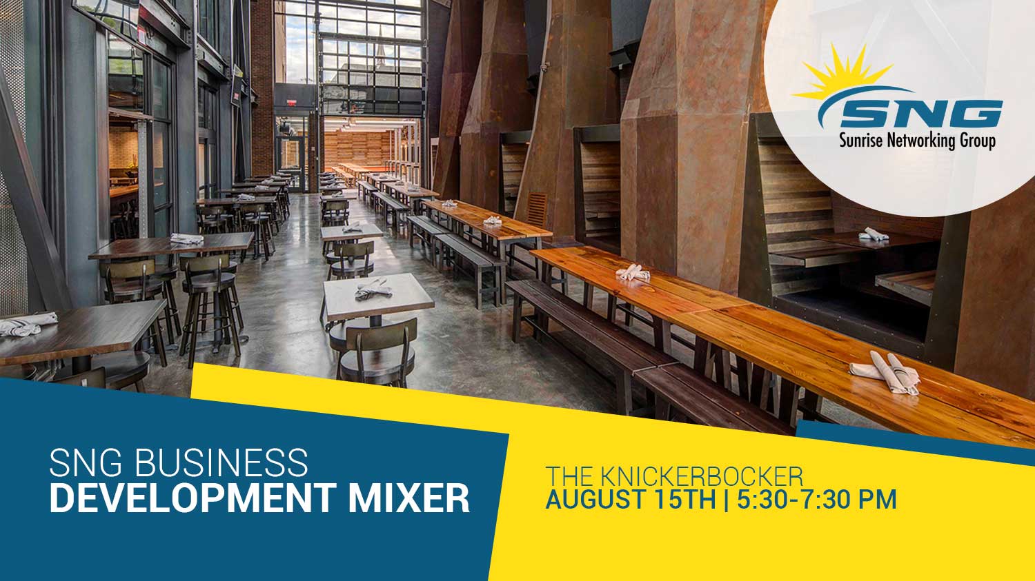 The Sunrise Networking Group invites you to an evening out with SNG members, entrepreneurs, executives, and career-minded professionals on Thursday, August 15th at New Holland Brewing Company – The Knickerbocker.