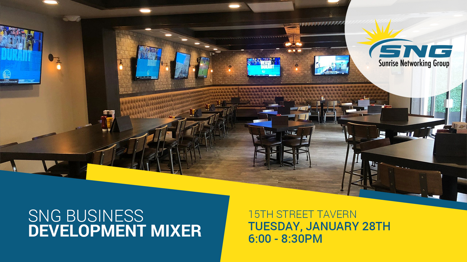28jan6:00 pm8:30 pmSNG Business Development Mixer - January 28th15th Street Tavern