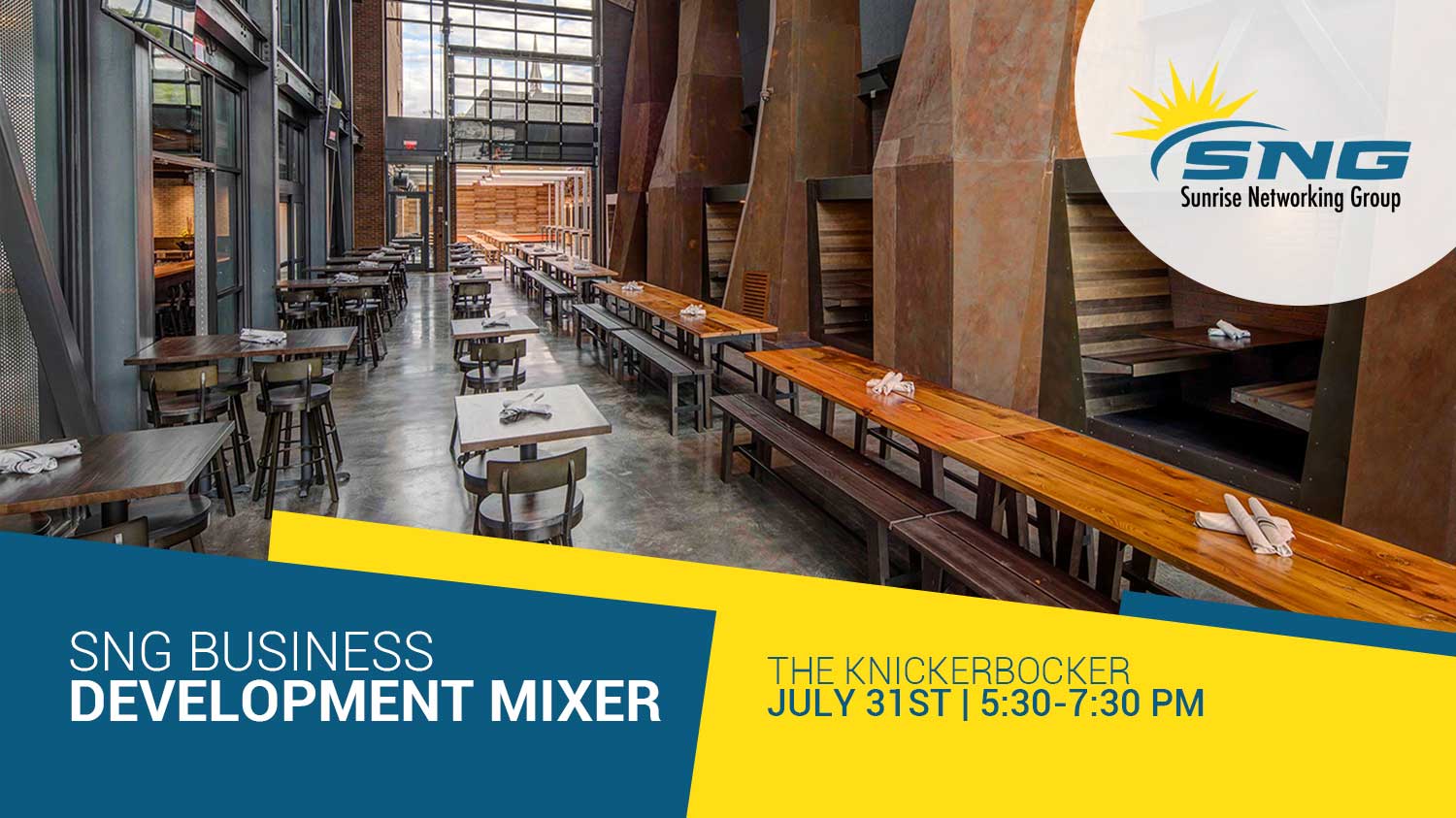The Sunrise Networking Group invites you to an evening out with SNG members, entrepreneurs, executives, and career-minded professionals on Wednesday, July 31st at New Holland Brewing Company – The Knickerbocker.
