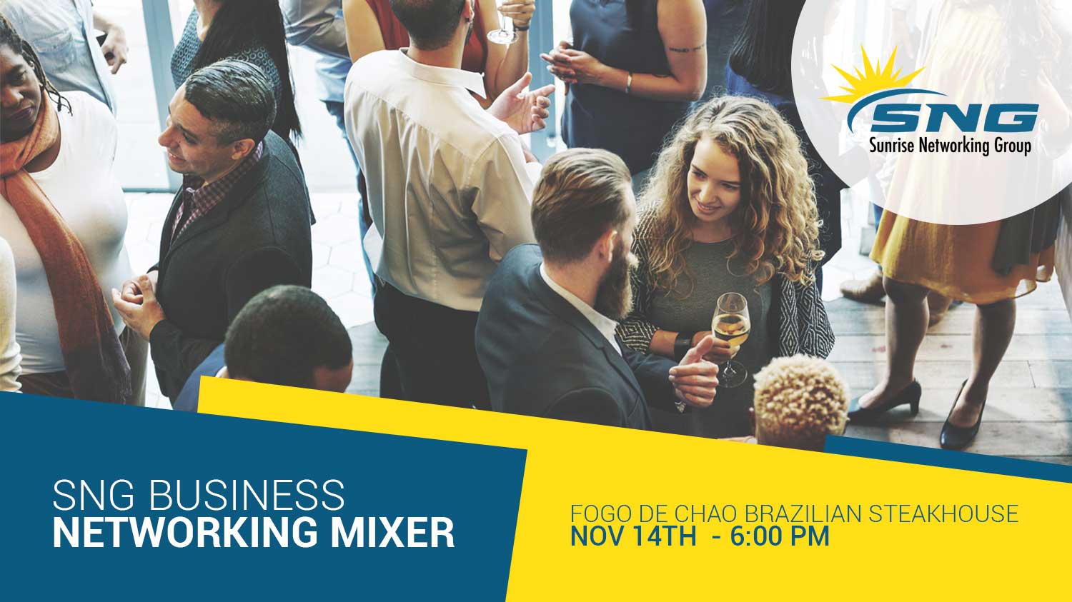 The Sunrise Networking Group invites you to an evening out with SNG members, entrepreneurs, executives, and career-minded professionals on Thursday, November 14th at Fogo de Chão Brazilian Steakhouse.